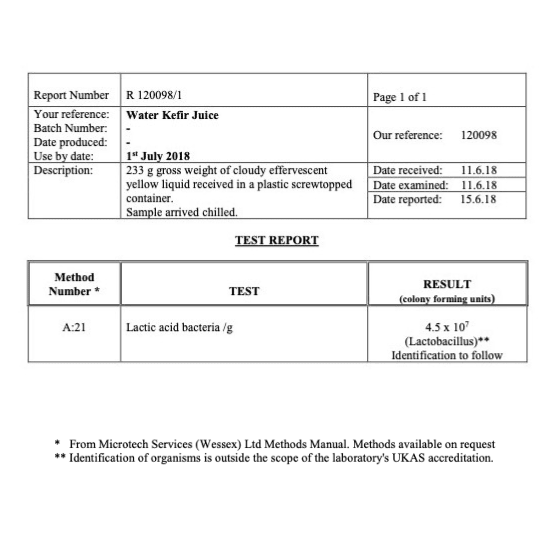 Ingredients: Kefir water grains, filtered water, Demerara sugar (for fermenting only), dried fruit, mango juice.